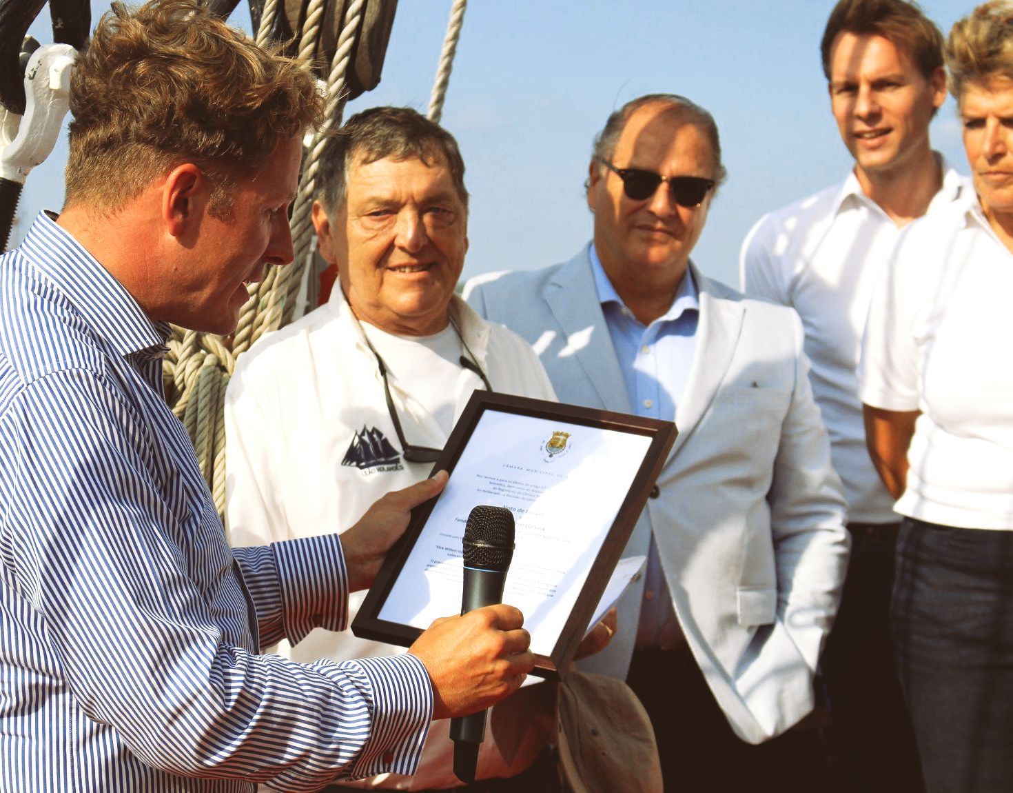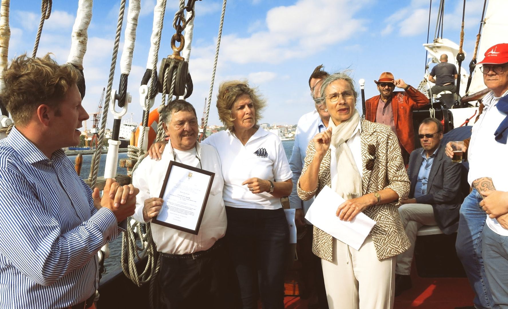 🇳🇱🇵🇹 In 2019 Thomas A. Hall de Beuvink, as iniciative taker and in representation of the Municipality of Lisbon, handed over an official honour to Dirk Willem Gesink, founder of Gesink Naútica: The "Voto de Louvor" (vote of praise) by the Municipality of Lisbon. The ceremony took place in presence of the Royal Dutch Ambassador to Portugal, H.E. Nienke Trooster, and the Chairman of the CCPH, Dr. Nuno Pinto de Magalhães on board of the sailing ship "Leão Holandês".